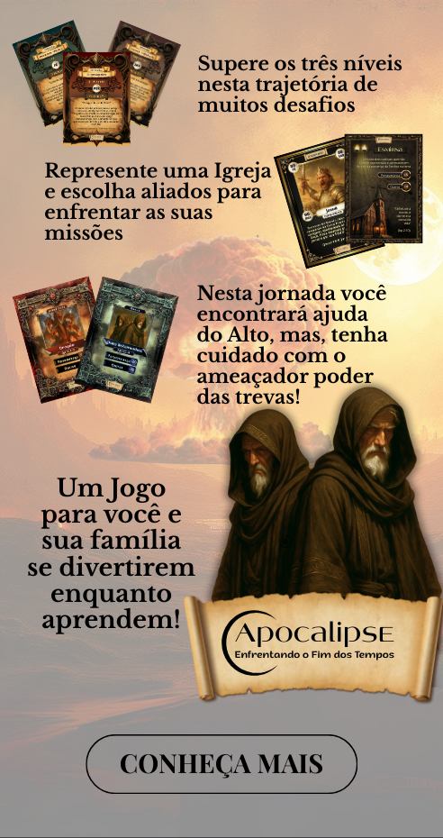 Apocalipse – Enfrentando o Fim dos Tempos, um jogo bíblico de cartas e tabuleiro que une fé, estratégia e diversão. Versão compacta e estendida.