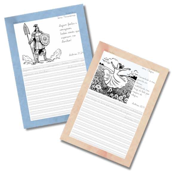 Salmos Caligrafados é um caderno bíblico de caligrafia cristã desenvolvido para auxiliar no aprendizado, memorização e meditação nos Salmos, unindo escrita manual, leitura bíblica e atividades de colorir.